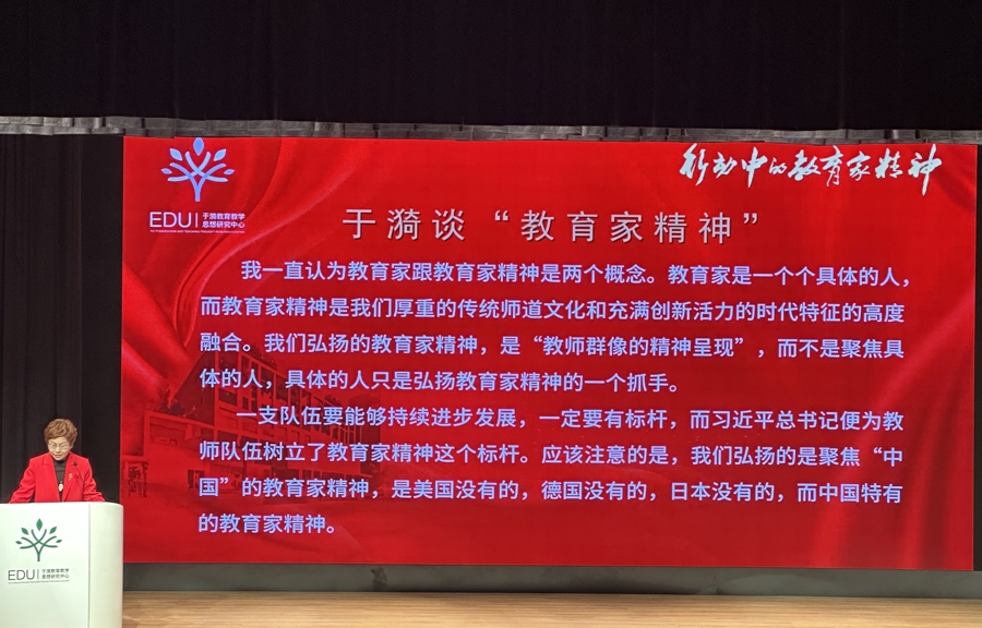 她是“人民教育家”国家荣誉称号获得者,她却认为,“我们弘扬的教育家精神,是教师群像的精神呈现,而不是聚焦具体的人”;她说,“我们弘扬的是聚焦‘中国’的教育家精神,是美国没有的,德国没有的,日本没有的,而中国特有的教育家精神”。