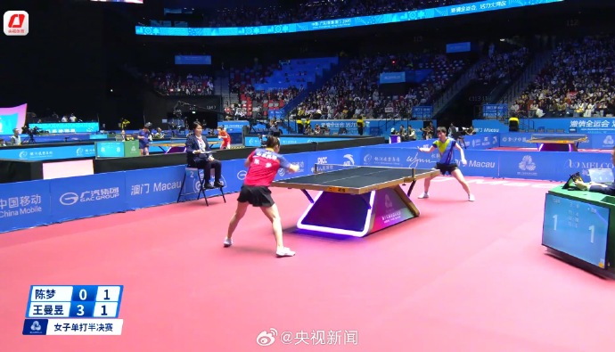 第十五届全运会女子单打半决赛,王曼昱战胜陈梦,晋级决赛。加油!